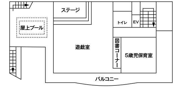 - 屋上、遊戯室が広く、のびのび体を動かすことができます